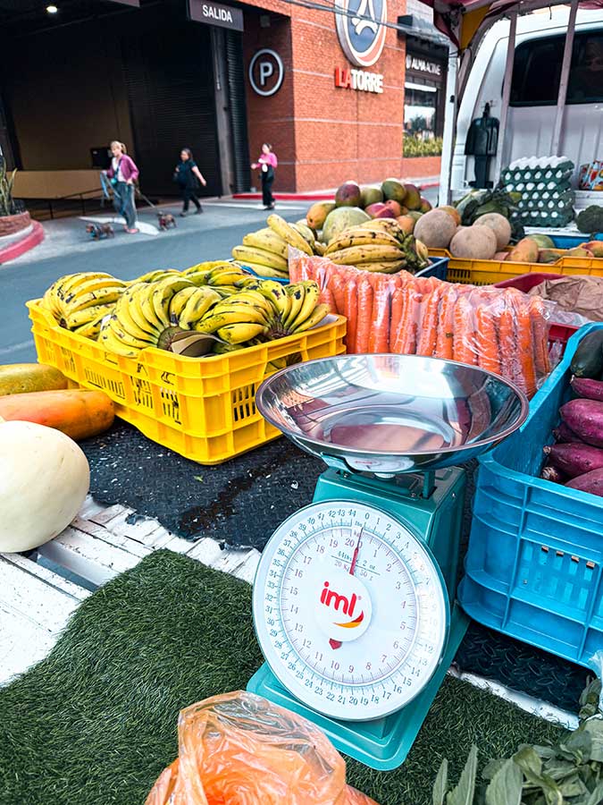 En medio de la geometría impecable de la Zona 10 —donde el concreto pulido, los vidrios espejados y las marcas internacionales dictan el ritmo— aparece, como una pequeña interrupción, un camioncito destapado cargado de frutas y verduras.